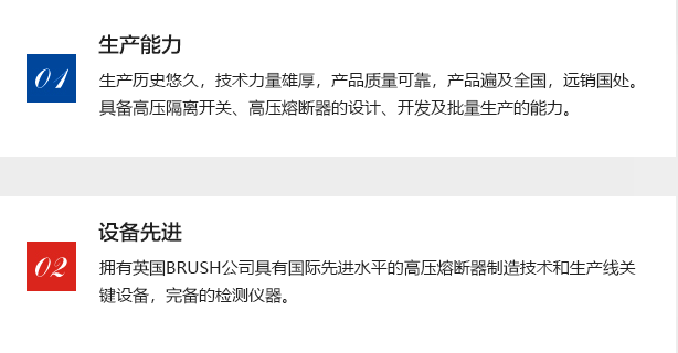 我公司擁有英國BRUSH公司具有國際先進水平的高壓熔斷器制造技術(shù)和生產(chǎn)線關(guān)鍵設(shè)備