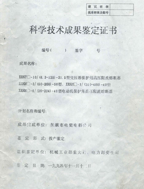 撫順電瓷廠電瓷電器公司是原機械工業(yè)部定點生產(chǎn)高壓隔離開關(guān)、高壓熔斷器、絕緣子、避雷器的骨干企業(yè)之一。生產(chǎn)歷史悠久,技術(shù)力量雄厚,產(chǎn)品質(zhì)量可靠,產(chǎn)品遍及全國,遠(yuǎn)銷國處。具備高壓隔離開關(guān)、高壓熔斷器的設(shè)計、開發(fā)及批量生產(chǎn)的能力。擁有英國BRUSH公司具有國際先進水平的高壓熔斷器制造技術(shù)和生產(chǎn)線關(guān)鍵設(shè)備,完備的檢測儀器。能夠批量生產(chǎn)符合國家和國際標(biāo)準(zhǔn)的3.6kv-40.5kv各種規(guī)格的戶內(nèi)外高壓隔離開關(guān)、高壓限流熔斷器系列產(chǎn)品。產(chǎn)品在國家高壓電器質(zhì)量監(jiān)督檢測中心通過全部型式并取得了兩部鑒定和型號證書,是國家經(jīng)貿(mào)委城農(nóng)網(wǎng)改造的推薦產(chǎn)品,通過了ISO9002國際質(zhì)量體系認(rèn)證,曾榮獲機械部科技進步二等獎和地方優(yōu)秀新產(chǎn)品獎。